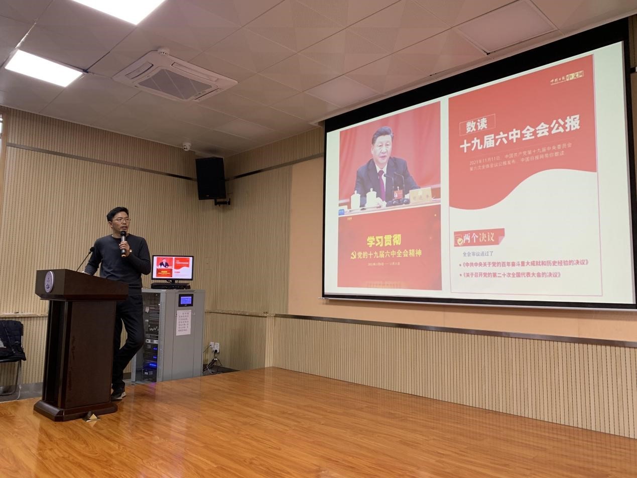 On December 17, 2021, QMES held a teach-in on “The Spirit of the Sixth Plenary Session of the 19th CPC Central Committee”, which was presided over by Dai Fuping, Party Secretary of QMES, with the attendance of all the Party members, including teacher and student members and probationary student Party members of QMES.