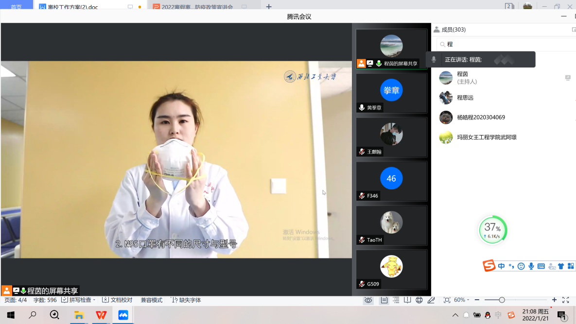 First of all, on the basis of the instructions on students returning home during the winter vacation, Cheng Yin introduced the knowledge related to epidemic prevention to the students.She reminded the students to enhance their awareness of epidemic prevention, learn necessary skills on epidemic prevention, and form good habits, such as washing hands frequently, paying attention to personal hygiene, and maintaining a regular schedule. Besides, she advised that we should go out less, take the initiative to isolate at home, go out with masks, ensure enough sleeping time and keep reasonable diet so as to balance nutrition and enhance immunity.Afterwards, all the teachers and students watched the video of personal prevention of COVID-19 produced by the NPU Hospital and learned in-depth the correct epidemic prevention methods from four aspects, namely “Seven-step Hand-washing Method”, “Correctly Wearing and Disposing of masks”, “Peeling off and Disposing of Latex Gloves” and “Daily Disinfection and Sterilization”.