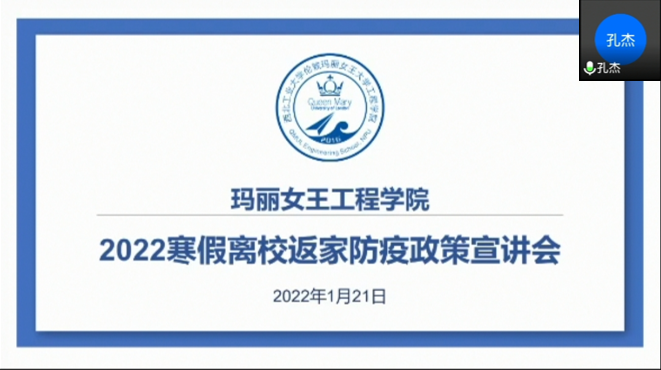 Finally, Dean Kong Jie made a concluding remark.Heextended his greetings and gratitude to all the teacher and student volunteers who worked tirelessly and selflessly in the work of epidemic prevention and control on campus, and also affirmed the contribution of the students who actively cooperated with the school’s epidemic prevention and control work.In addition, he stressed that students should treat this pandemic rationally, actively learn about the relevant information, scientific knowledge and measures on epidemic prevention and control through official channels, stay sober and determined at all times.At last, on the eve of the Chinese Lunar New Year, Dean Kong sent his greetings to all the teachers and students of QMES, looking forward to the end of the epidemic and the reunion in the new semester.