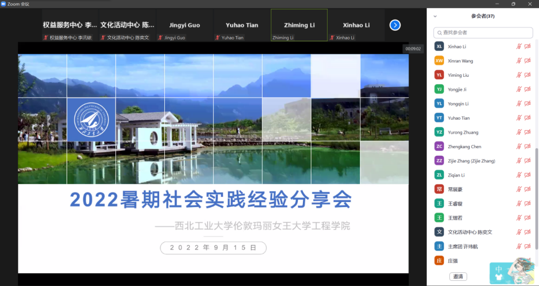 The Youth League Committee and the Student Union of QMES jointly organized a sharing meeting of social practice, aiming to share the valuable experience of field research, expand the influence of good qualities, and broaden students' horizon. Team members expressed that they will shoulder the responsibility, study the Party history in the observation and practice, strengthen their faith, follow the leadership of the Party, combine the theoretical learning with practice, and constantly improve the political awareness, so that they can set the stage for the 20th CPC National Congress with concrete actions.