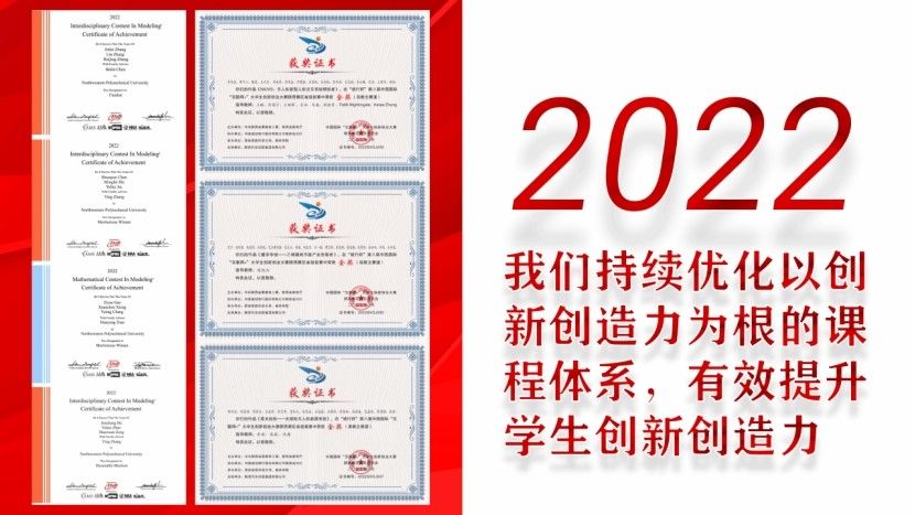 Following the progressive professional development path, we focused on the cultivation of students’ mathematical foundation, language ability, professional knowledge and skills and professional practice ability. We also adhered to the abilities improvement on critical thinking, teamwork, and engineer’s thinking and creativity. In 2022, our students achieved a breakthrough in the 8th International “Internet +” Competition, winning 1 gold award, 1 silver award and 4 bronze awards. The programs of QMES’ students were awarded 3 first prizes, 12 second prizes and 1 Honorable Mention in the American Mathematical Contest in Modeling. We also have 116 projects in college students innovation and entrepreneurship competition wining the approval, which ranked the first at NPU. In addition, students won 3 gold awards in “Internet+” College Students Innovation and Entrepreneurship Competition of Shaanxi Province; 1 gold prize in the Shaanxi “Challenge Cup” Competition; 2 outstanding awards and 4 first prize of the 20th NPU “AAMS Cup” Competition. In total, there were 515 teams and 2102 person-times participated in various innovation and entrepreneurship projects, among which, 621 people won the prizes.What’s more, we won 1 “Model Team”, 1 “Model Class”, and our Youth League Committee was also awarded by NPU.