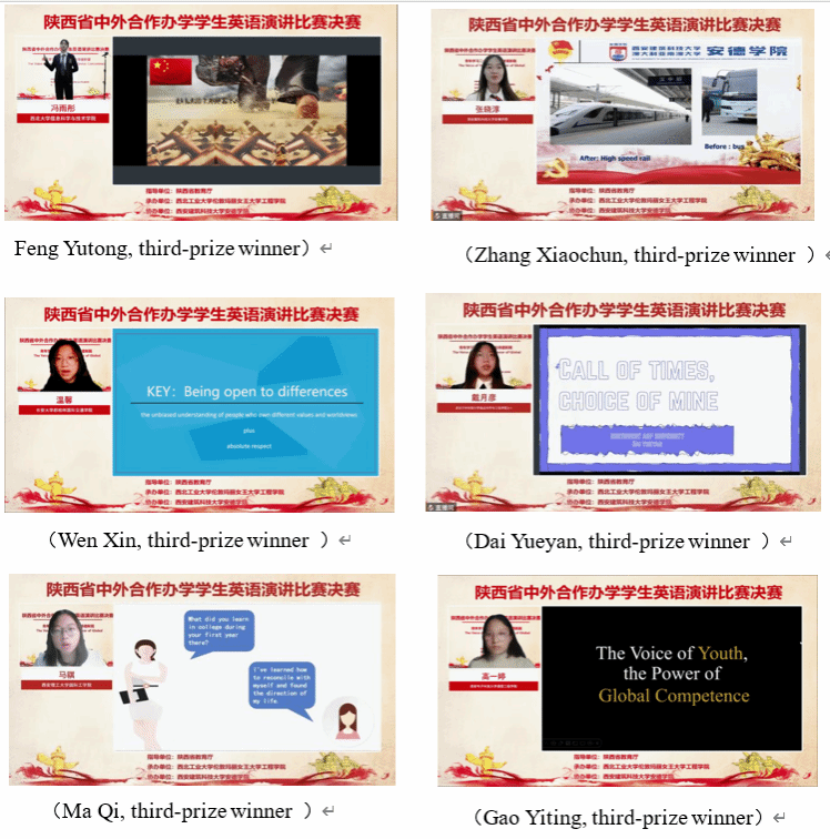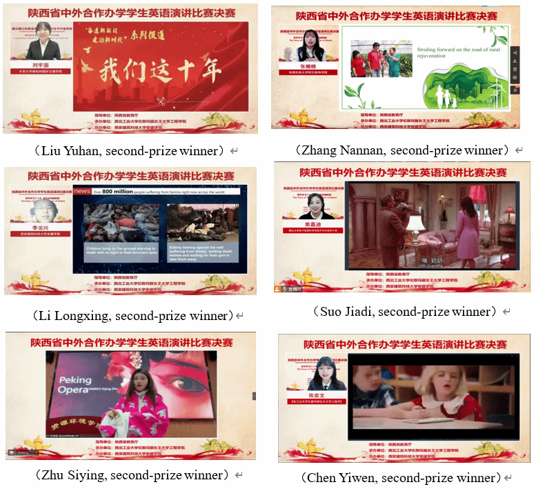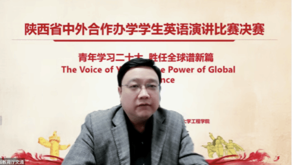 The English speech contest brings together outstanding students, promoting patriotism, showing the elegant demeanour of the youth, enhancing cultural self-confidence, and integrating ideological and political education into daily education and specialized learning. The contest provides a stage for Sino-foreign cooperative education students of Shaanxi province to show their elegant demeanor. It also enlivens the cultural and artistic atmosphere of the campus and fully demonstrates the youthful, confident and enthusiastic spirit of the contemporary college students. At the same time, the contest calls on young students to further study Xi Jinping Thoughts on Socialism with Chinese Characteristics for a New Era, implement the spirit of the 20th National Congress of CPC, grasp Xi Jinping Remarks on Education and Youth Work, inspire the students to strengthen the theoretical study and professional practice, enhance their native land emotion.