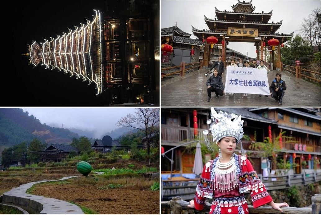 On February 7th, the practice team visited Mengmumiao Village. Mengmumiao Village retains the past main structure of the dilapidated wooden stilted buildings which currently have been rebuilt in the new site according to the original style. Here, visitors can stroll in the field of the countryside, range Mengmumiao Village Style Street, appreciate the iconic building of Miao Village, that is, Drum Tower, and admire the stilted building inlaid with numerous coloured lights. Wonderful and moving, night of the village full of bright neon deeply attracts everyone. Mengmumiao Village has a series of cultural projects of the Miao nationality, such as the family feast of the year, original ecological farming, Lusheng party, Miao Embroidery, fish cooking, horse fighting as well as the live-action song and dance drama of Miao Charm.