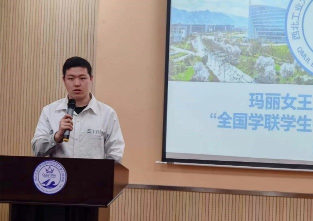 Hai Yingchao, a 2019 undergraduate student majoring in Materials Science and Engineering at QMES. He is a preparatory member of the Communist Party of China, the current Executive Chairman of the Student Union of QMES, the 16th Undergraduate Permanent Representative, and Member of the 14th Young Marxists Foster Project Backbone Training Class for College Students.