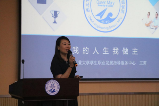 On 10th June 2019, Prof. Wang Li, Vice Director of the NPU Undergraduate Student Affairs Department and Director of Student Career Development Counseling Center, delivered a speech on occupational development with entitled I Decide My Life. Vice Dean Chen Jun of QMES hosted the activity. The undergraduates of QMES attended.