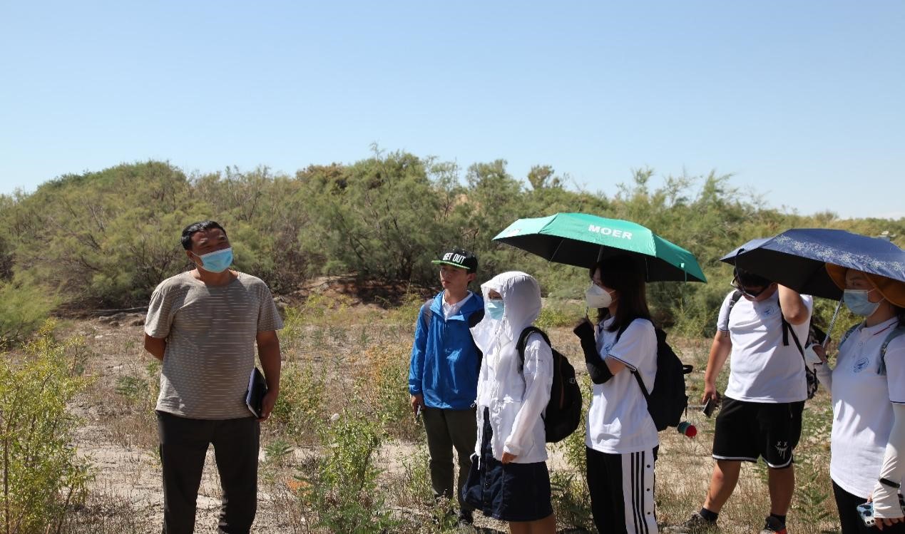 On the afternoon of the same day, led by staff from the Xinjiang Academy of Environmental Protection Sciences, the team visited the State Environmental Protection Scientific Observation and Research Station for Junggar Desert-Oasis Ecotone. The station dedicates to establishing environmental background database and conducting research on ecological environment and biodiversity positioning observation, which gradually facilitates the research on desert ecology, oasis ecology and pollution ecology, and forms multi-scale, comprehensive, long-term and continuous monitoring research fields after nearly 10 years of infrastructure construction and observation research. The ability to simulate and solve interdisciplinary problems provides fundamental support for ecological and environmental management. Adili, head of State Environmental Protection Scientific Observation and Research Station for Junggar Desert-Oasis Ecotone, led the practice team to visit the plant germplasm bank and animal and plant herbarium for remediation of heavy metal pollution of soil. The rich species of animal and plant specimens attracted the students by the biodiversity, fully demonstrating the functions of science popularization and education of the station.