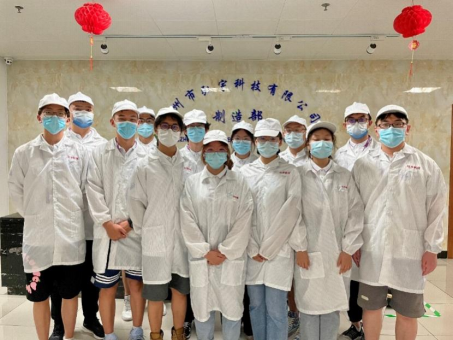 Finally, the team entered the factory of Hongyu Technology Co., Ltd. to visit and study. The division of labor in the company’s workshop is clear, including three production modes: manual production, semi-automatic robots production, and simulated artificial machines production. The internal management is well-organized. During the visit, the practice team further learned about the production methods of the company, which broadened their horizons.