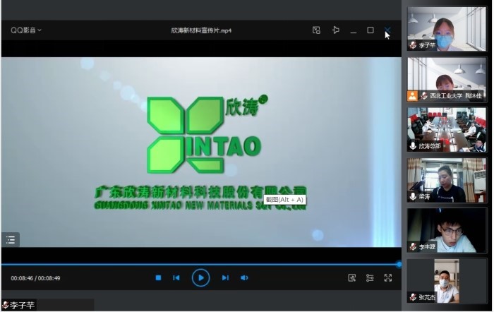In response to the epidemic prevention policy, the team and Guangdong Xintao New Material Technology Co., Ltd. discussed employment-related issues in the onlinesymposium. Liang Tao, director and vice president of operations of the company, and Zhang Jingli, executive vice president of the company took part in the discussion.