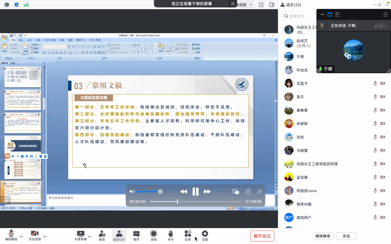 On November 25th, the Labor Union of QMES invited Yu Hui, Secretary of School of Life Sciences Party Committee, to carry out an online lecture on document writing for all the staff members of QMES. Yu Hui presented a detailed introduction to various skills of document writing, which helped to improve all the staff members’ writing ability and lay a solid foundation for their future work.
